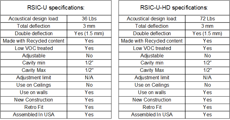 The RSIC-U® / RSIC-U HD® is designed for use with various wall designs. The RSIC-U® / RSIC-U HD® decouples the wall framing from the floor and ceiling structure. The RSIC-U® system eliminates flanking paths normally caused by a wall directly connected the floor or ceiling. When combined with the RSIC-1 wall system the highest possible noise control can be achieved by preventing noise from passing through wall framing into the adjoining structure. The RSIC-U® / RSIC-U HD® works directly with the RSIC-1 to achieve total decouple walls from the structure.