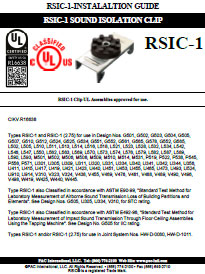 Type RSIC-1 also Classified in accordance with ASTM E492-96, "Standard Test Method for Laboratory Measurement of Impact Sound Transmission Through Floor-Ceiling Assemblies Using the Tapping Machine". See Design No. G505 for IIC rating.